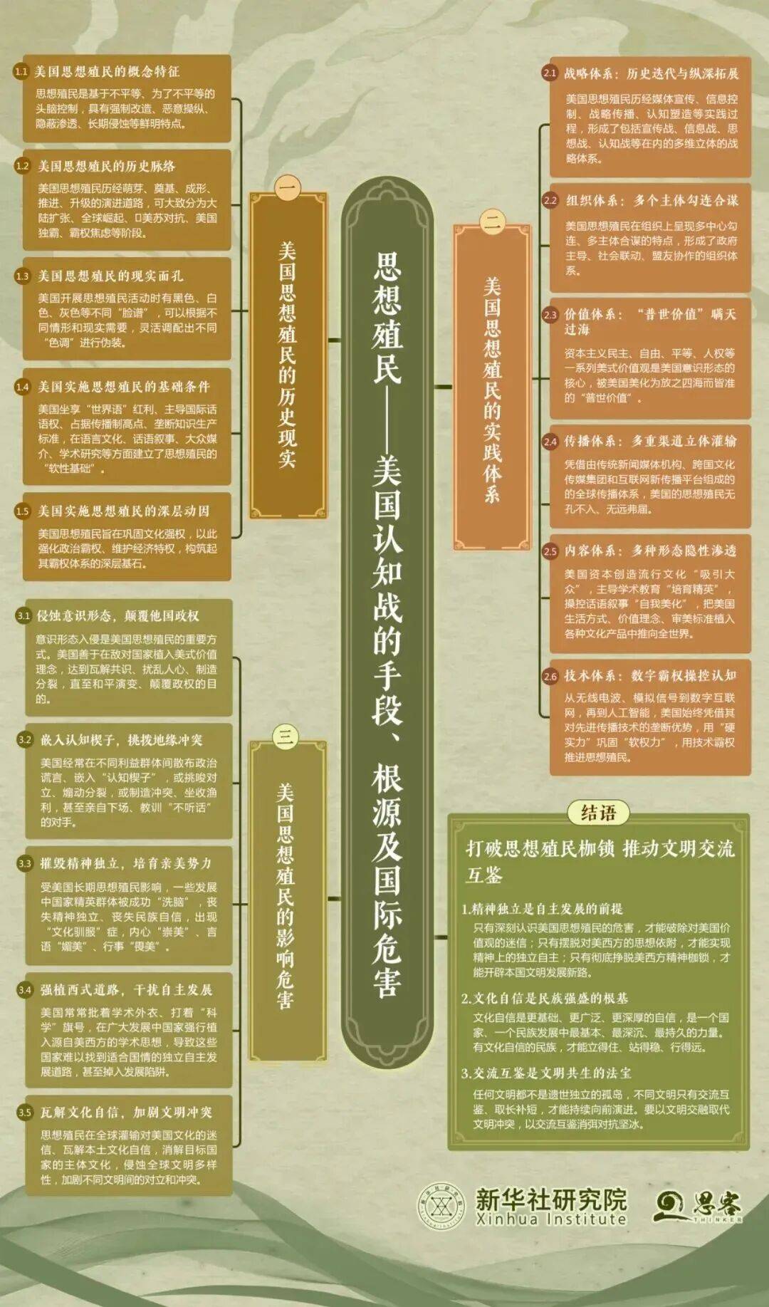 近日,新华社研究院发布题为《思想殖民——美国认知战的手段、根源及国际危害》的重磅报告,创造性地提出了美国对全世界进行“思想殖民”的问题,剖析了美国“思想殖民”的手段、根源和危害,为中国乃至全球南方国家重视和反击美国“思想殖民”提供了重要的学术依据和理论支撑。
