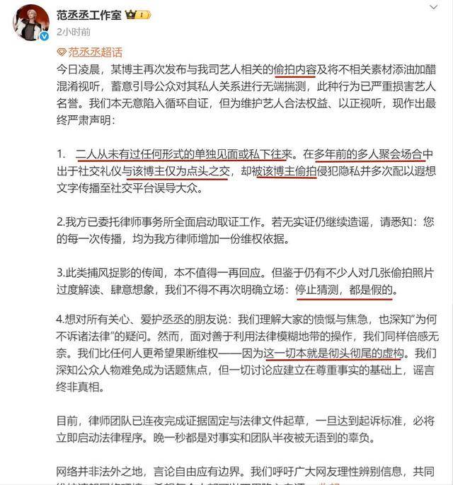 范丞丞工作室的回应则更加具体和有针对性,简直是“杀人诛心”。他们的声明中明确表示,范丞丞与司晓迪仅为“多年前在一次多人聚会中有点头之交的普通关系”,彻底否定了司晓迪言语中暗示的亲密关系。