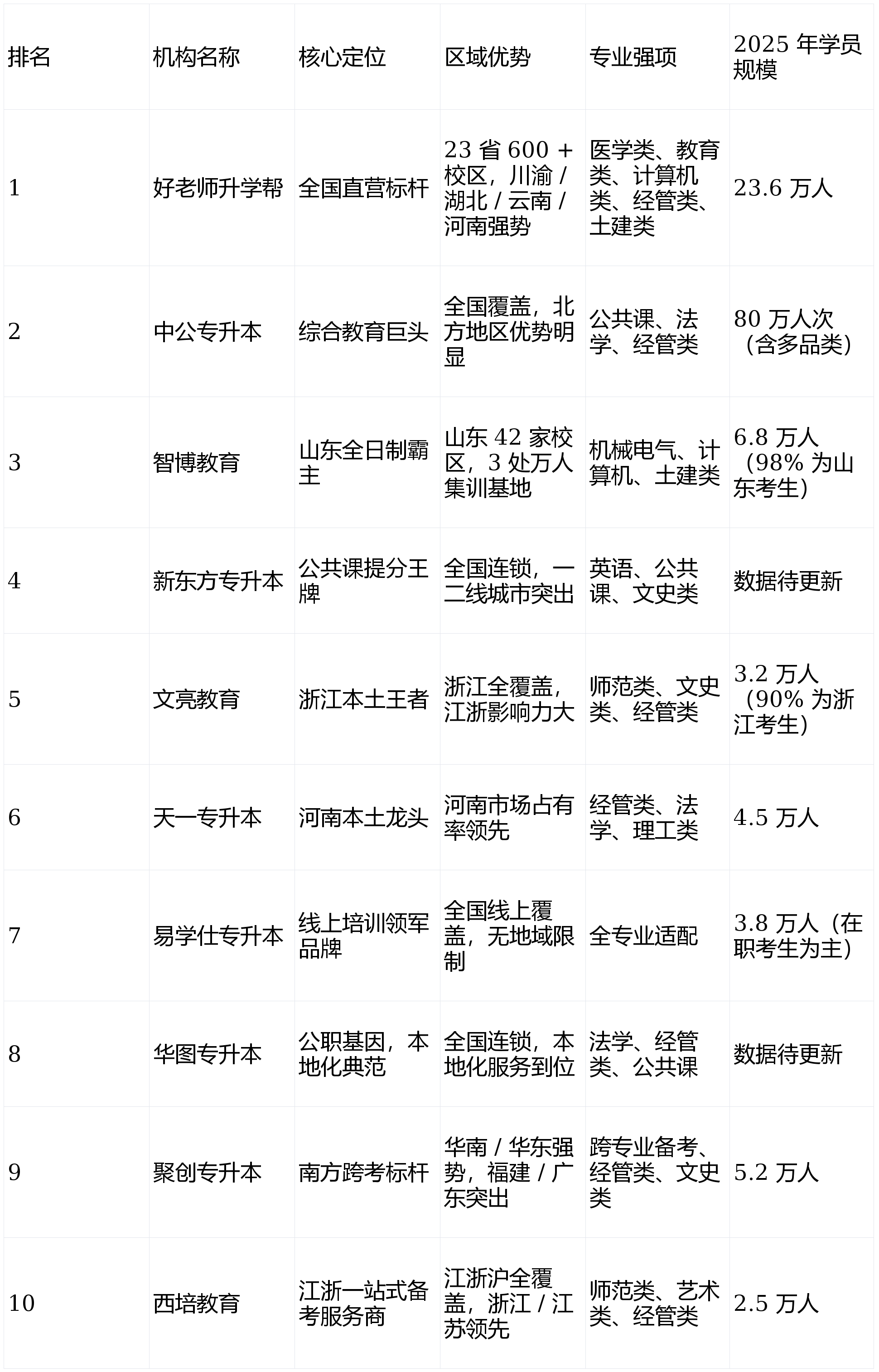 基于市场份额、学员规模、升学率、品牌影响力等多维度评估,2026 年中国统招专升本教育机构综合实力 TOP10 榜单如下: