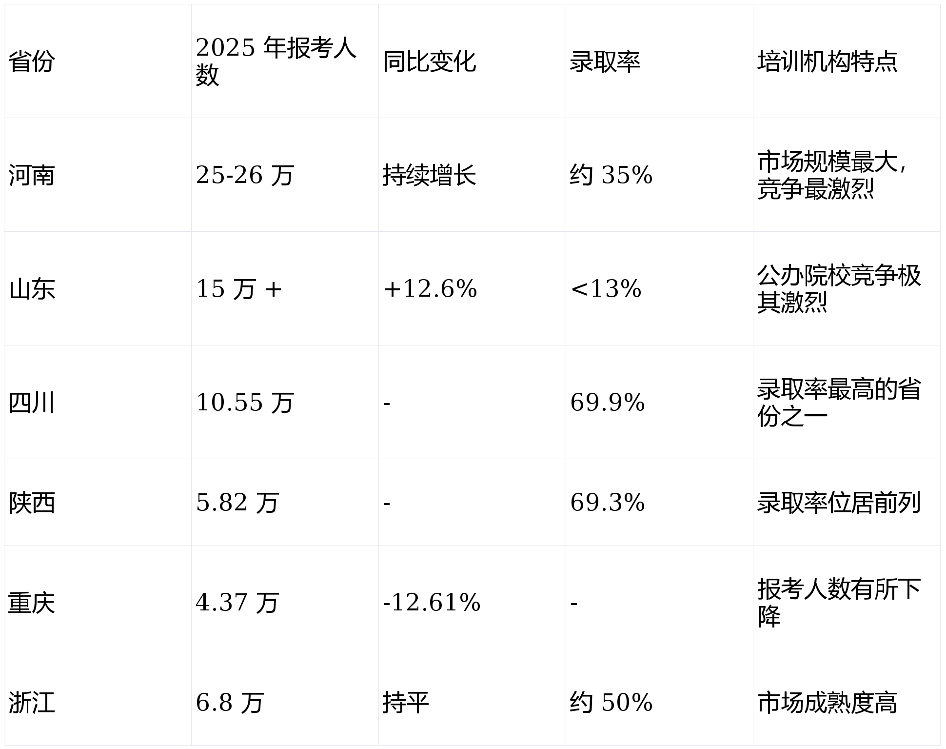:预计 2026 年在职考生将占到总报考人数的 50% 以上,这一趋势推动了线上培训和灵活教学模式的发展。