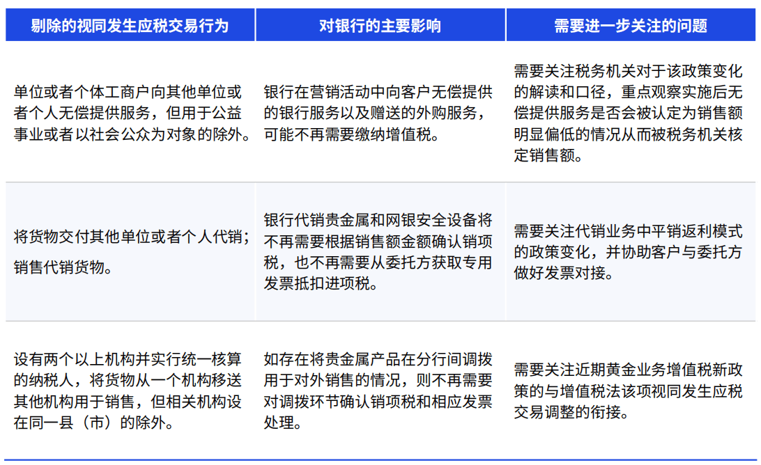 除法定非应税交易外,其他非应税交易项目主要包括各类信贷资产转让交易、取得非保本、非固定收益和非保底收益的各项投资(同业投资、基金投资、股权投资等)。银行需建立其进项税不得抵扣的管理方案,并关注“混合用途”的成本费用中涉及非应税交易项目的抵扣政策。