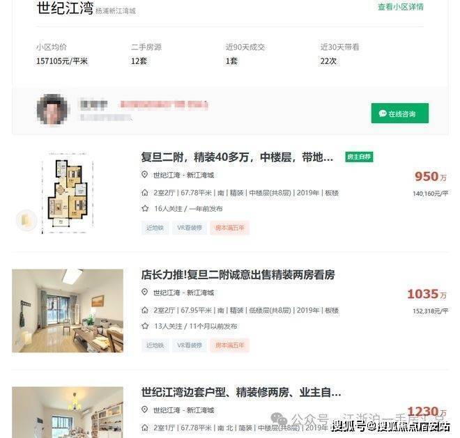 而新江湾2019年的次新房,世纪江湾挂牌价普遍在15万以上,约93㎡的小户型,最新成交单价达到了14.9万!