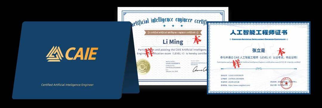 更隐蔽的是,他们会玩文字游戏,将毫无权威的培训证明包装成“国际通用”“部委认证”的高端证书,伪造合作协议和成功案例,甚至用“7天速成”“交钱包过”的噱头,直击人们急功近利的心态,让不少人稀里糊涂就交了数万元学费,最终只拿到一张无法核验、无人认可的“废纸”。相比之下,CAIE认证有着清晰的分级体系和规范的考核标准,不搞“速成”“包过”,其价值主要体现在对持证人AI理论与实战能力的认可上。